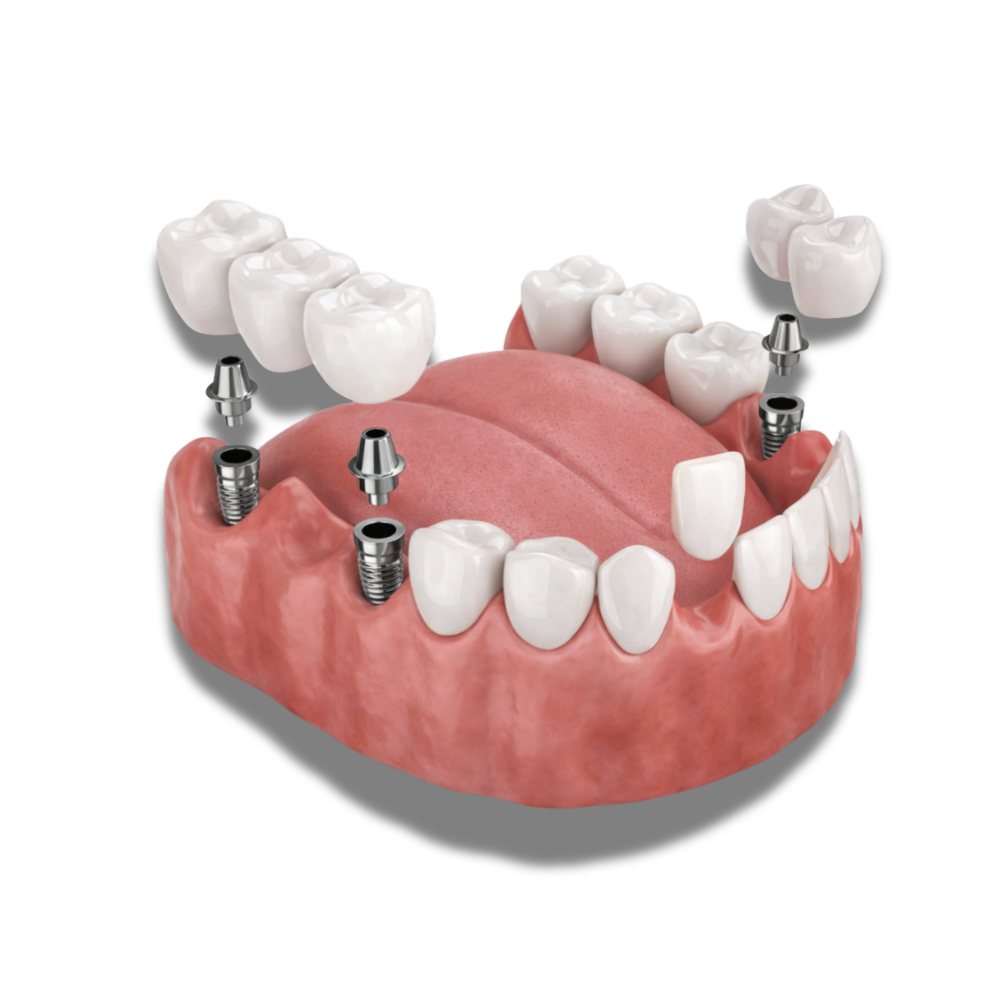 Full-arch restoration using six strategically placed implants for maximum stability and a complete, permanent smile in as little as one day.