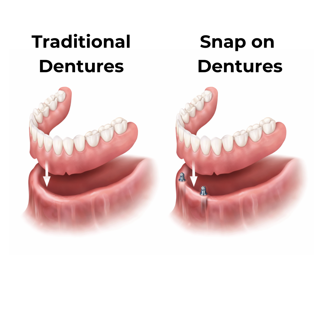Removable dentures that snap securely onto implants, giving you the stability you need with the convenience of easy removal for cleaning.